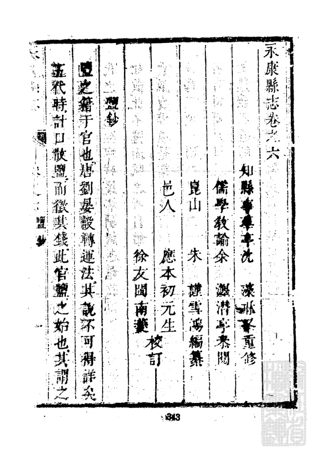 147、【清】《永康县志》十六卷 沈藻等修朱谨等纂