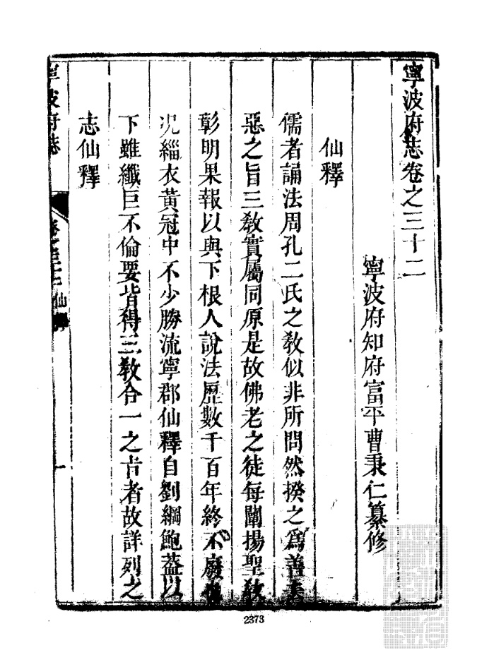 44、【清】《宁波府志》三十七卷 曹秉仁纂